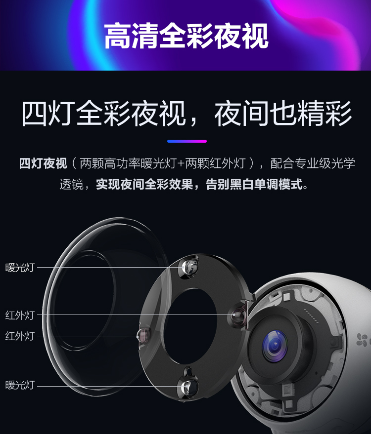 螢石C3C 200萬高清全彩夜視PoE攝像機