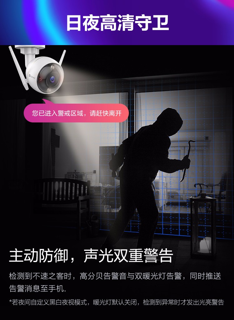 螢石C3Wi 200萬超清全彩AI雙向語音通話無線監控攝像頭